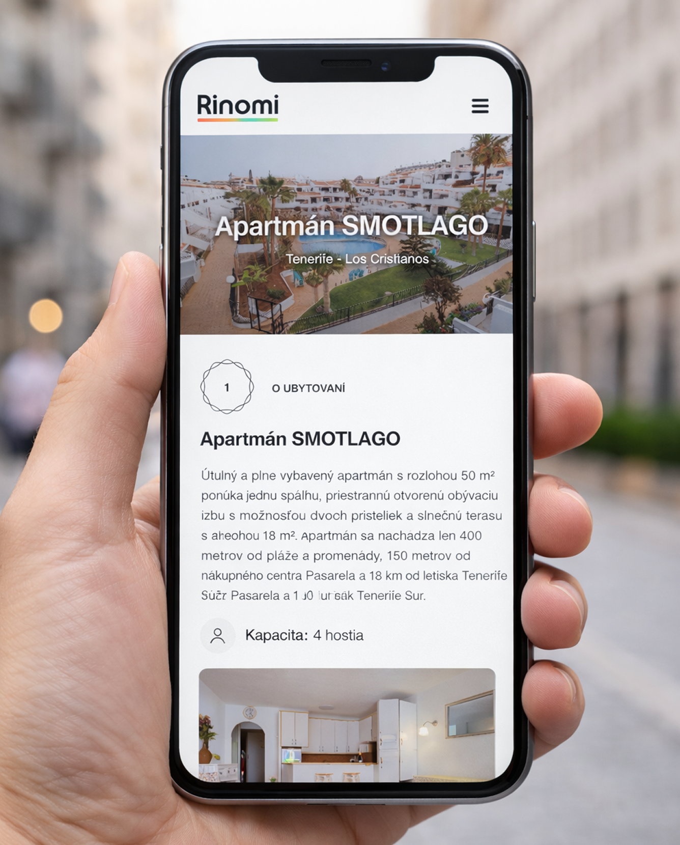 Tvoja vlastná stránka s fotkami, popisom, dostupnosťou a všetkým, čo hostia potrebujú vedieť.